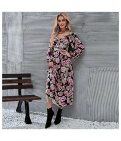 Fashion Floral Print Temperament Long-Sleeved Dress Wholesale Dresses N5323032800251Dresses View All