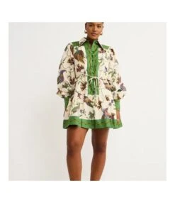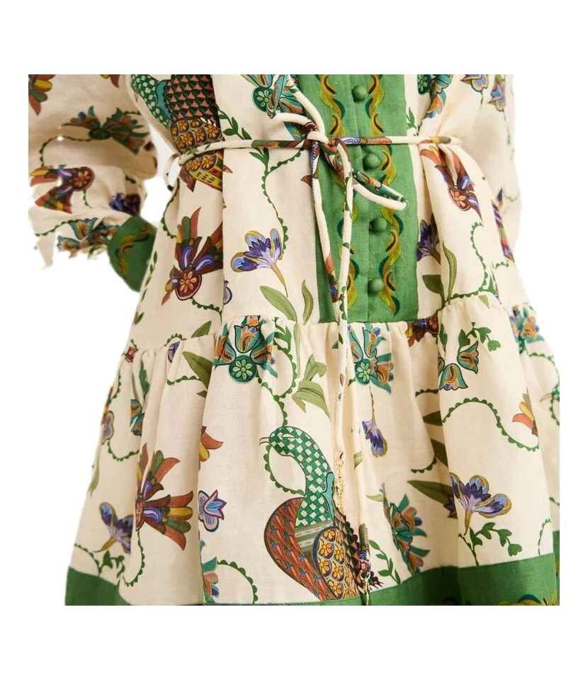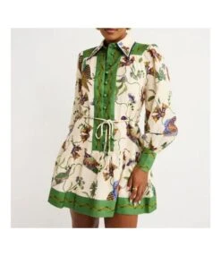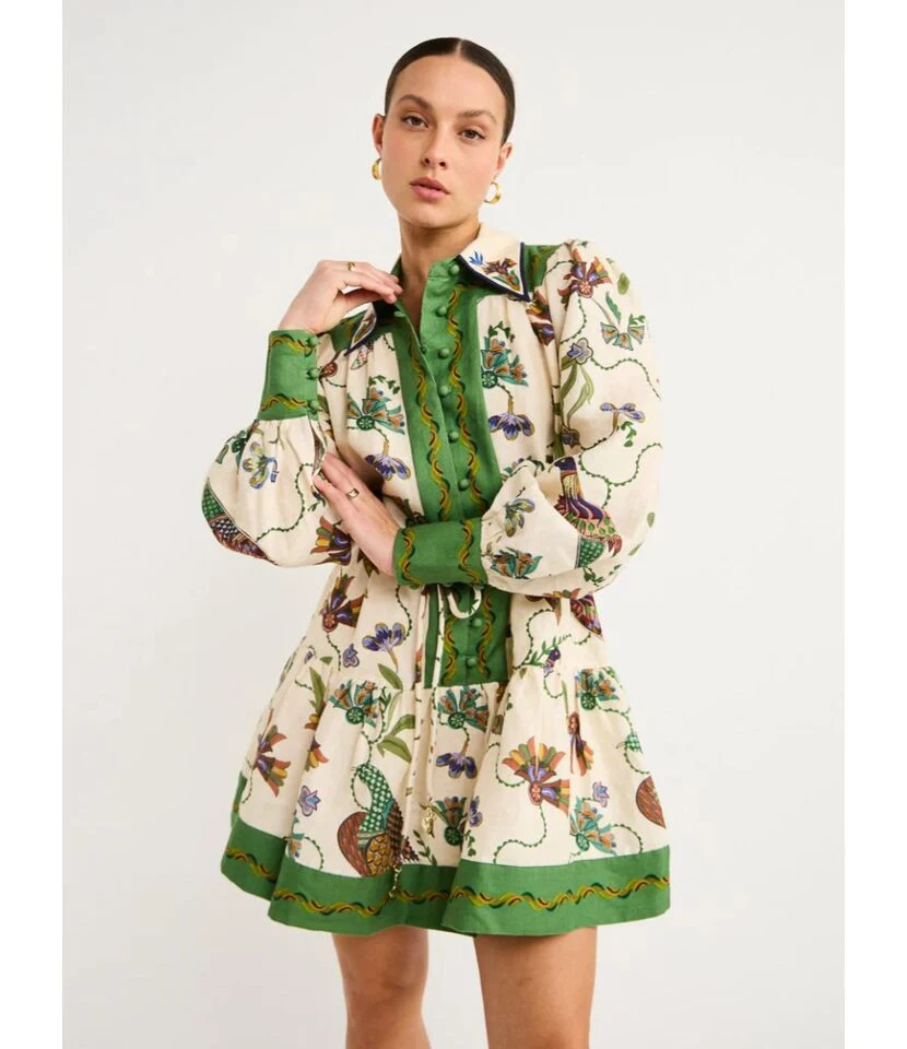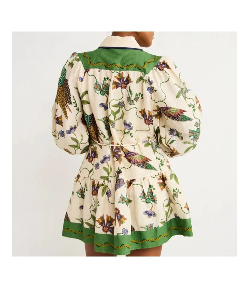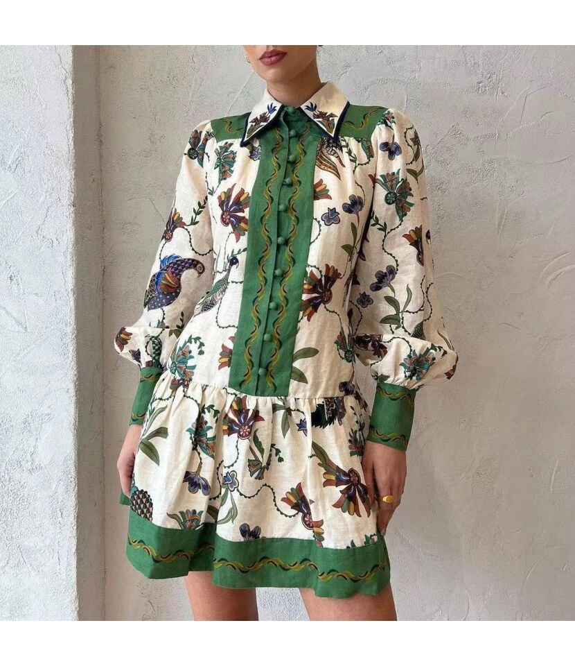 Fashion Single Breasted Long Lantern Sleeve Graffiti Printed Tie Waist Dresses Wholesale Dresses N5923080800044
