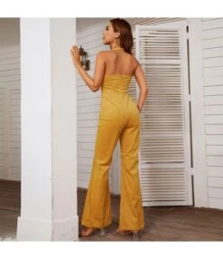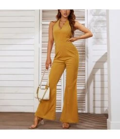 Fashion Sleeveless Halterneck Zip Open Back Casual Solid Color Flares Loose Wholesale Jumpsuits