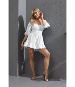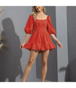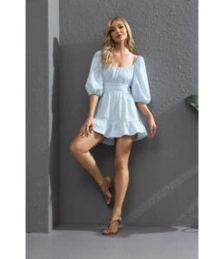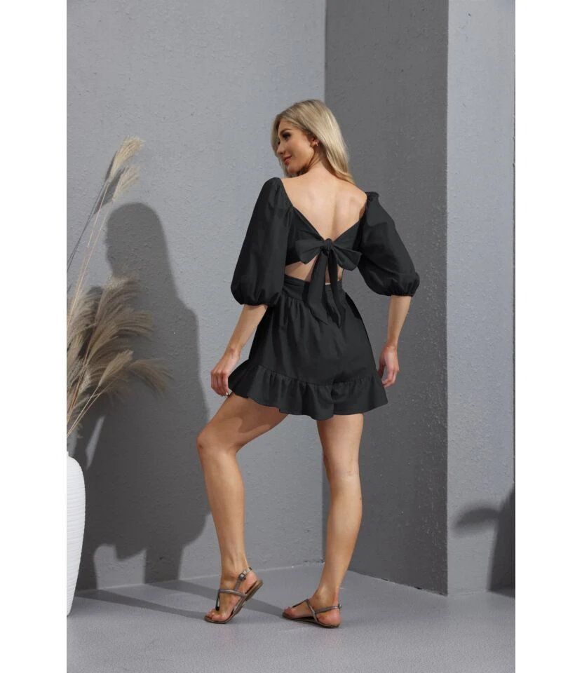 Be the first to review “Fashion Square Neck Lantern Sleeve Bow Open Back Sexy Ruffle Wholesale Jumpsuits SJ203736” Cancel reply
