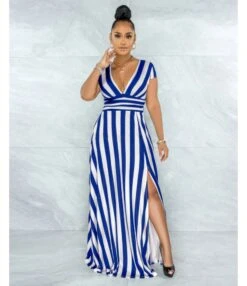 Be the first to review “Fashion Striped Slit Design Wholesale Maxi Dresses Deep V Sexy Womens Clothing SD203474” Cancel reply