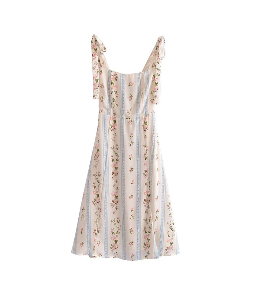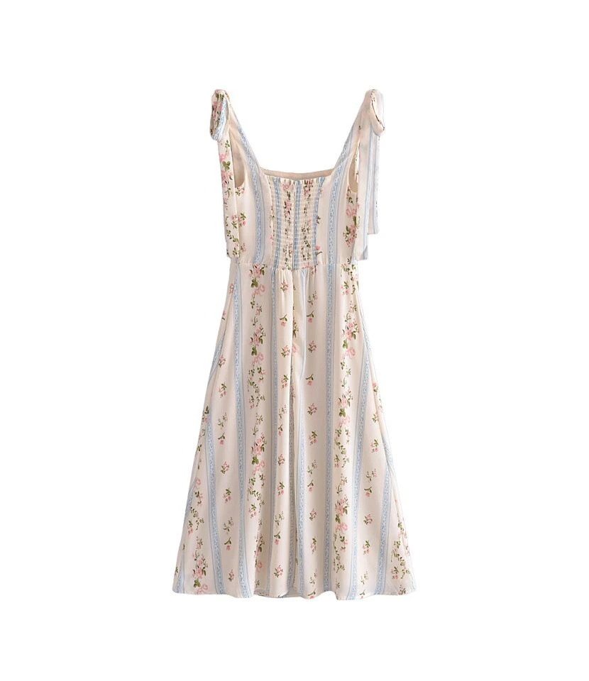 Floral Print Country Style Vintage Sundresses Lace-Up Slim Fit Side Slit Sling Dress Chic Wholesale Dresses SDN533022