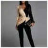 Fly Sleeve Pressed Pleated Patchwork Deep V-Neck Floor-Length Jumpsuit Wholesale Jumpsuits N5323032800169