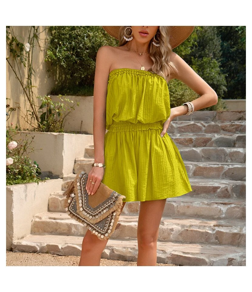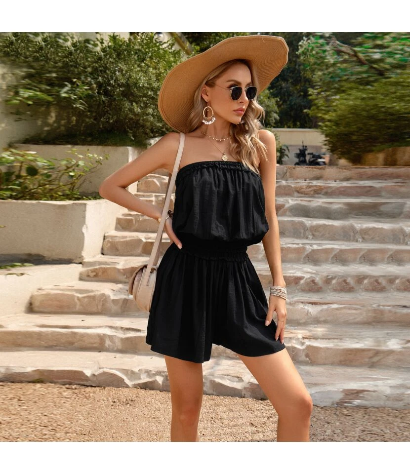 Folded Off-The-Shoulder Slim-Fitting Solid-Color Playsuits Wholesale Women’S Clothing N4623041900006