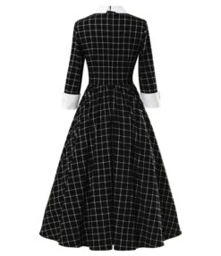 Half Sleeve Bow Trim Plaid Vintage Dress