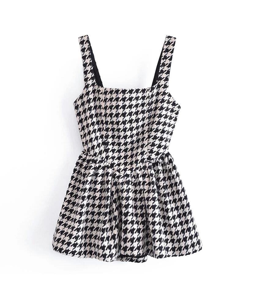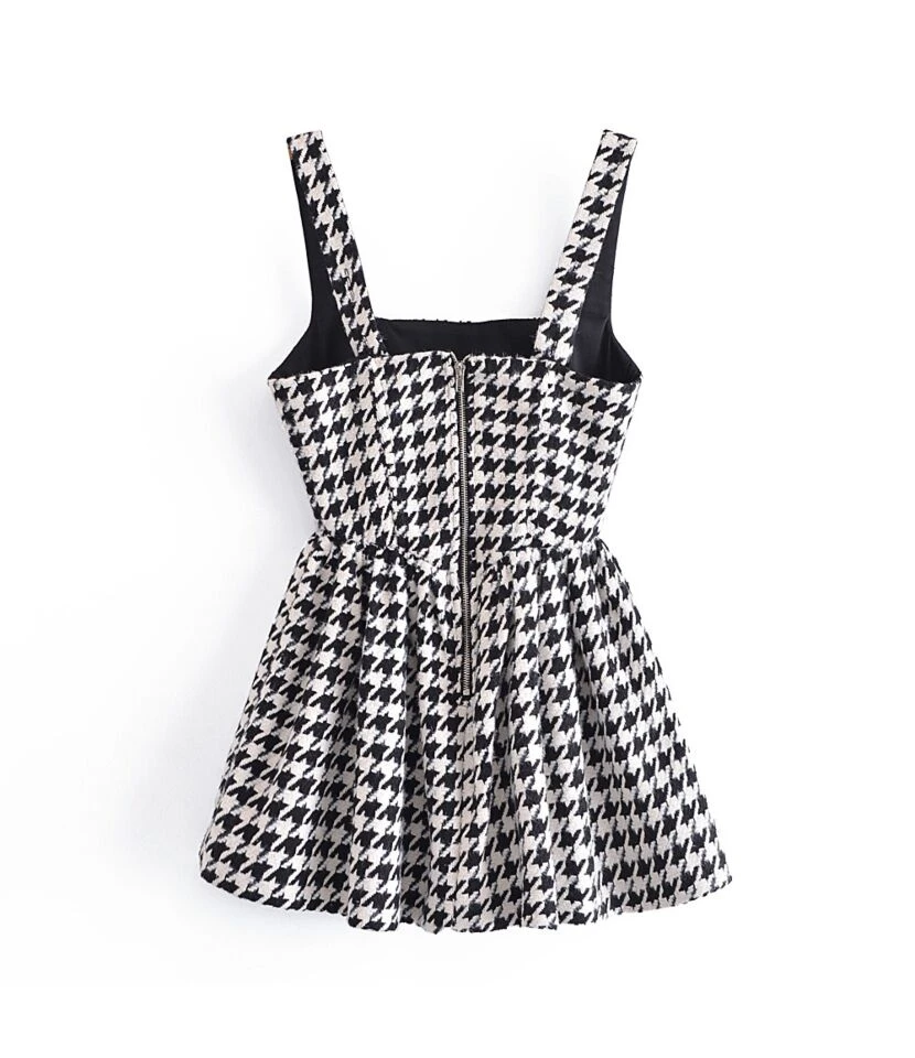Be the first to review “Houndstooth Suspender Mini Dress High Waist A-Line Slim Wholesale Dresses SDN561212” Cancel reply