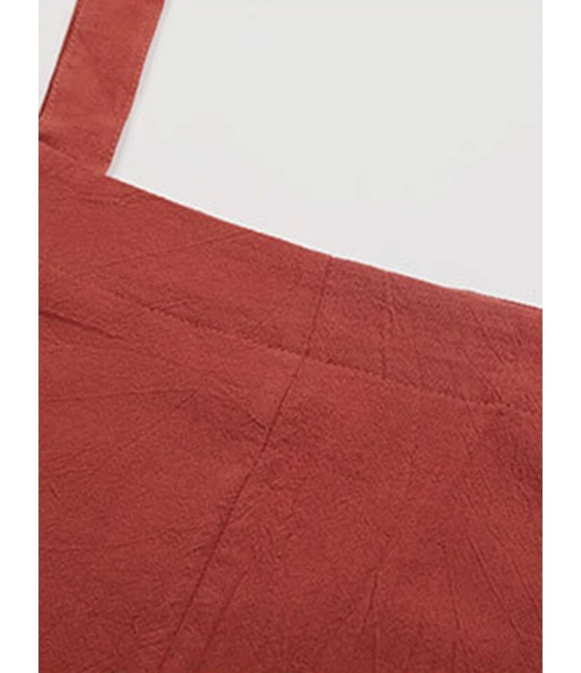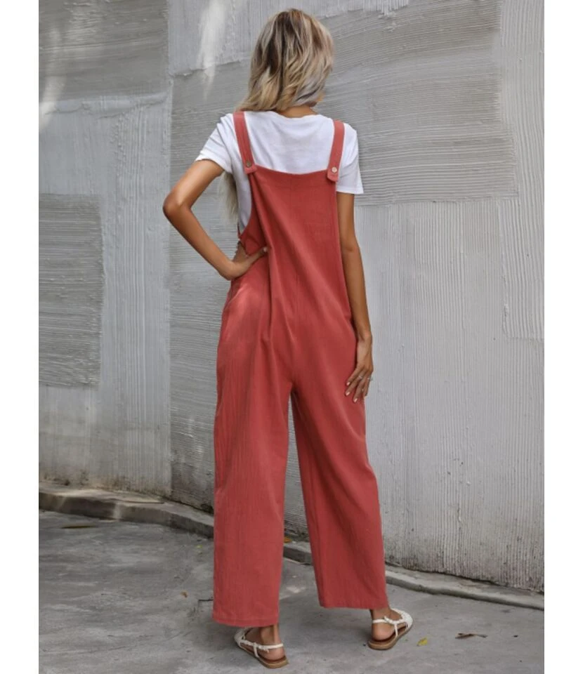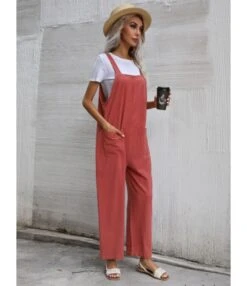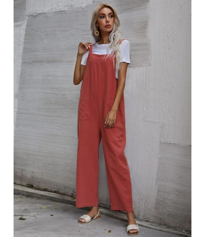 Linen Casual Loose Pockets Detail Wide Leg Overalls 210722367