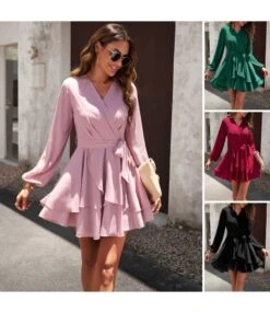 This Loose Short Fall Dress Puff Sleeve Deep V-neck Wholesale is for those women who want to flaunt their figure. Its deep V neck helps to reveal the natural beauty. The loose-fitting Loose Short Fall Dress Puff Sleeve Deep V-neck gives you a comfortable and relaxing look. Puff sleeves of this short dress enhance the beauty and add an extra innocence to your look and in Loose Short Fall Dress Puff Sleeve Deep V-neck all eyes will remain on you. We can plainly state that wearing a loose or short dress is fashionable and enjoyable. This is a vogue that will never fade because it makes a woman feel seductive and can enhance her shape. Put Loose Short Fall Dress Puff Sleeve Deep V-neck on and you’ll look amazing. You must go for it if you want your skin to look wonderful and your exposed figure to be as alluring as possible.