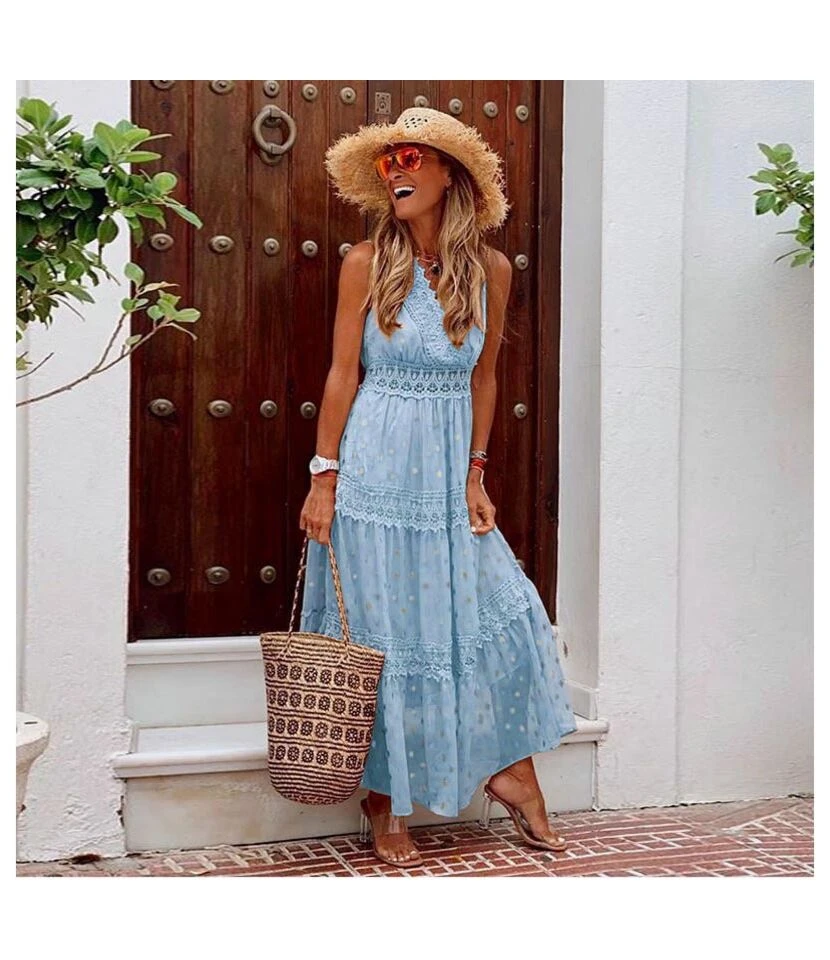 Be the first to review “Polka Dot Print Lace Stiching V-Neck Chiffon Slip Swing Dress Sexy Sundresses Trendy Wholesale Maxi Dresses SD531742” Cancel reply