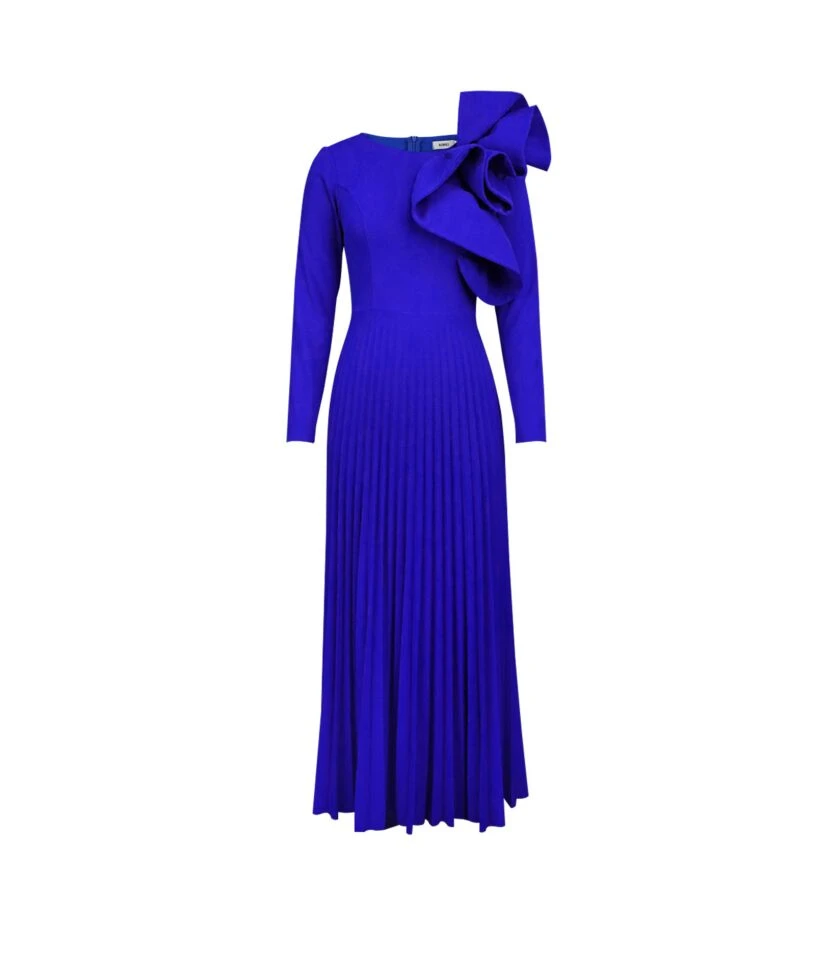 Round Neck Long Sleeve Three-Dimensional Decoration Pleated Party Solid Color Dress Wholesale Dresses N4623050600020