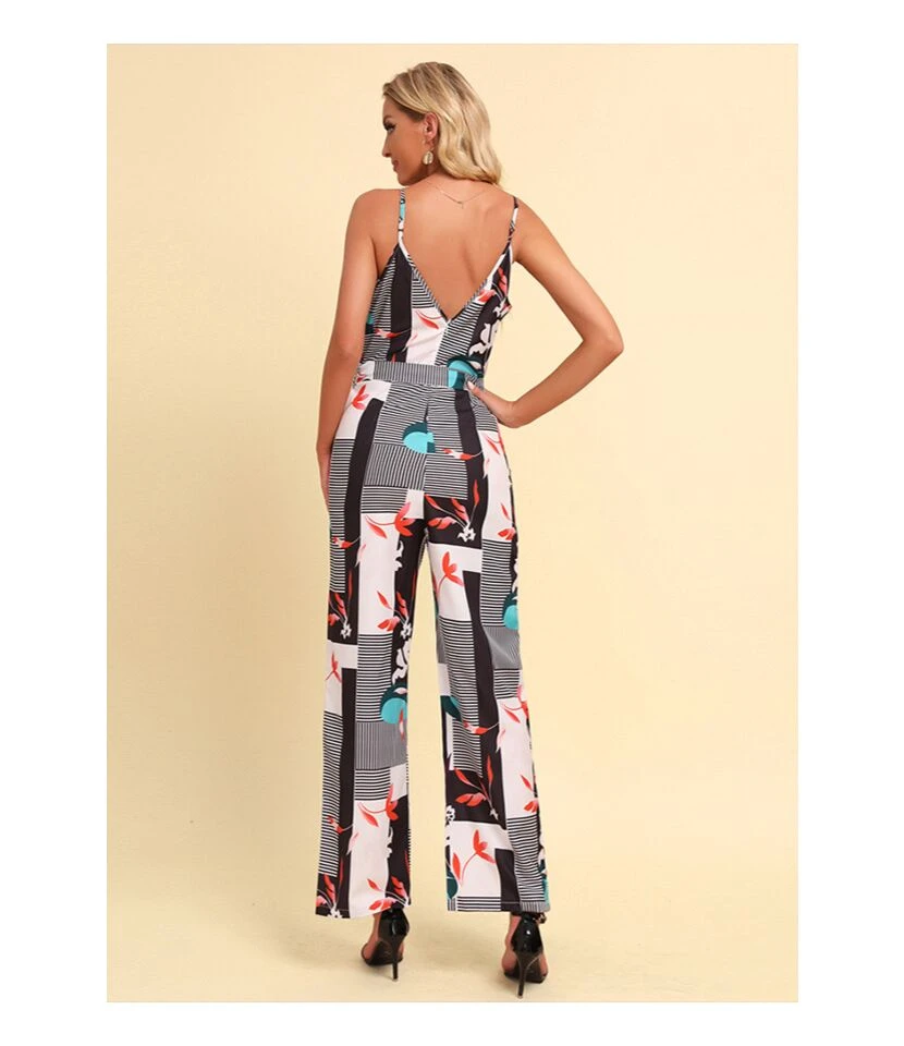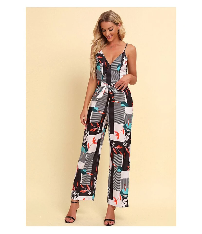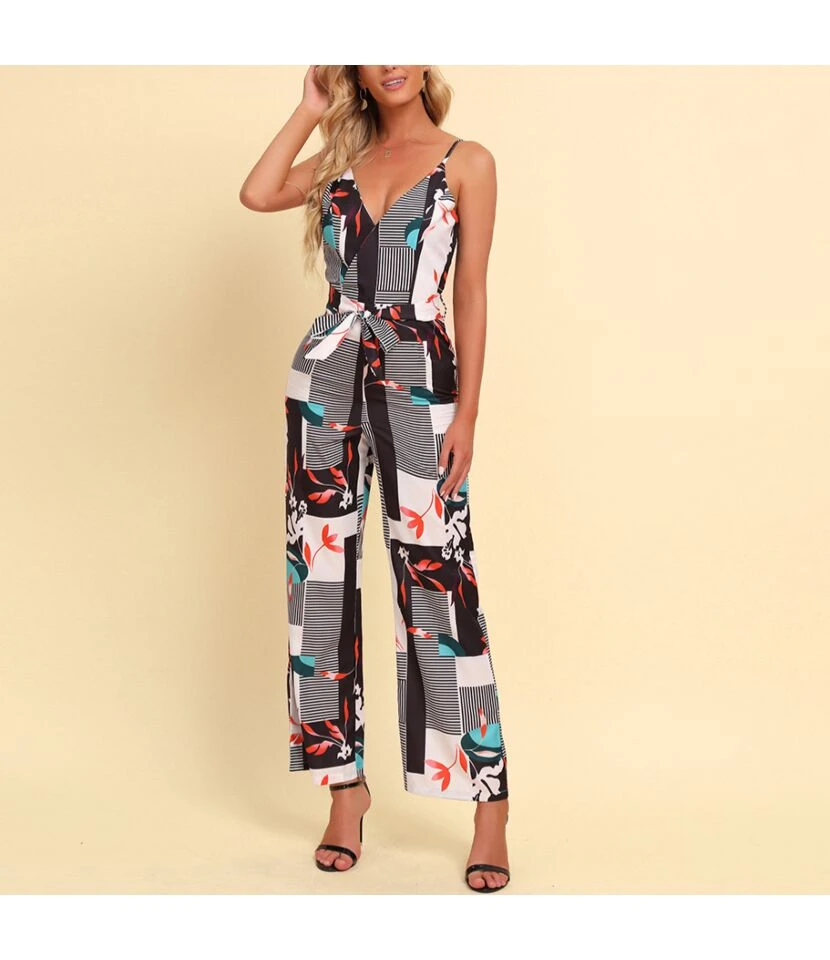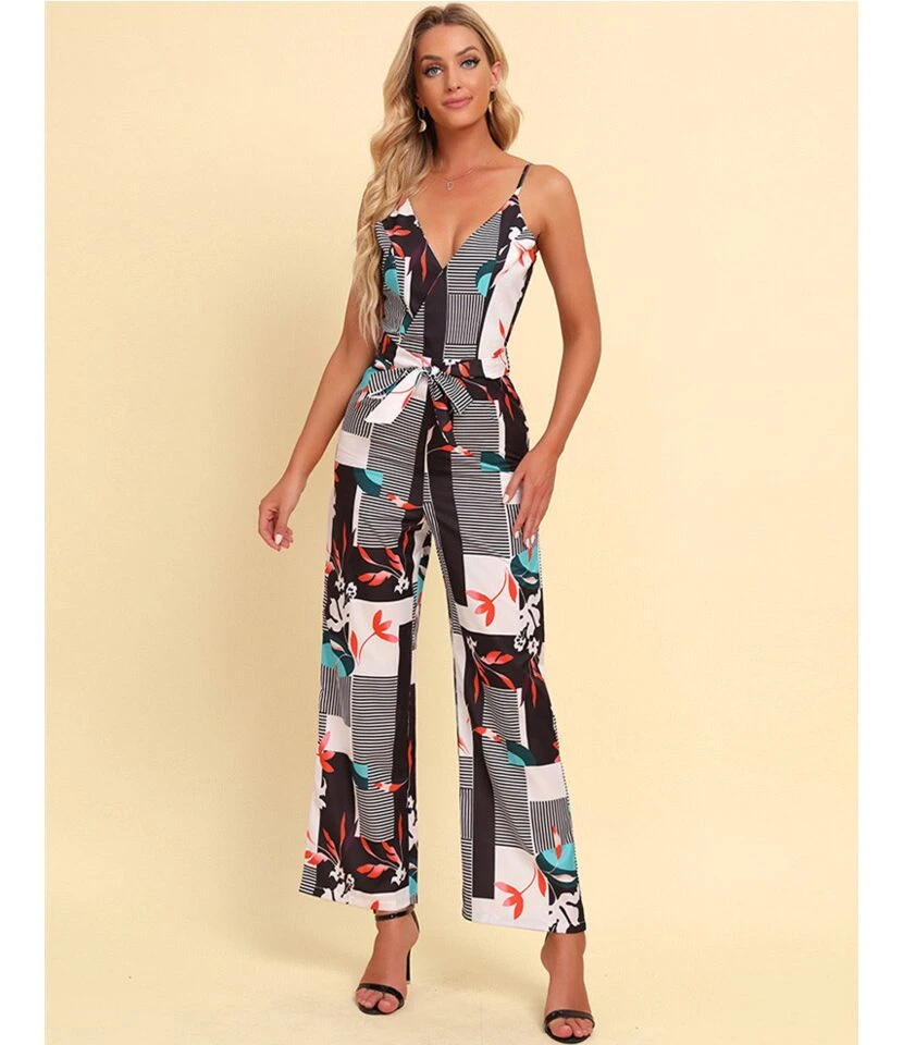 Sexy Deep V-Neck Sling Print Backless Lace-Up Wholesale Jumpsuits SJN560144