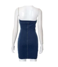 Sexy Off-Shoulder Sleeveless Denim Dress Button-Zip Bodycon Wholesale Dresses SDN561098