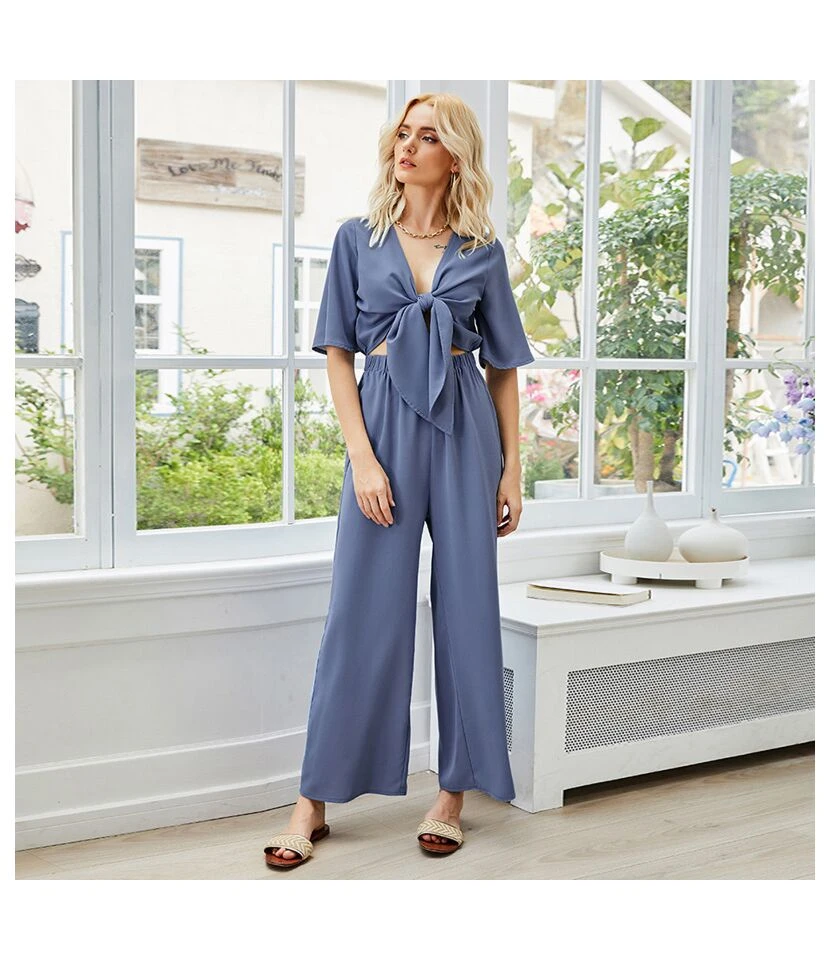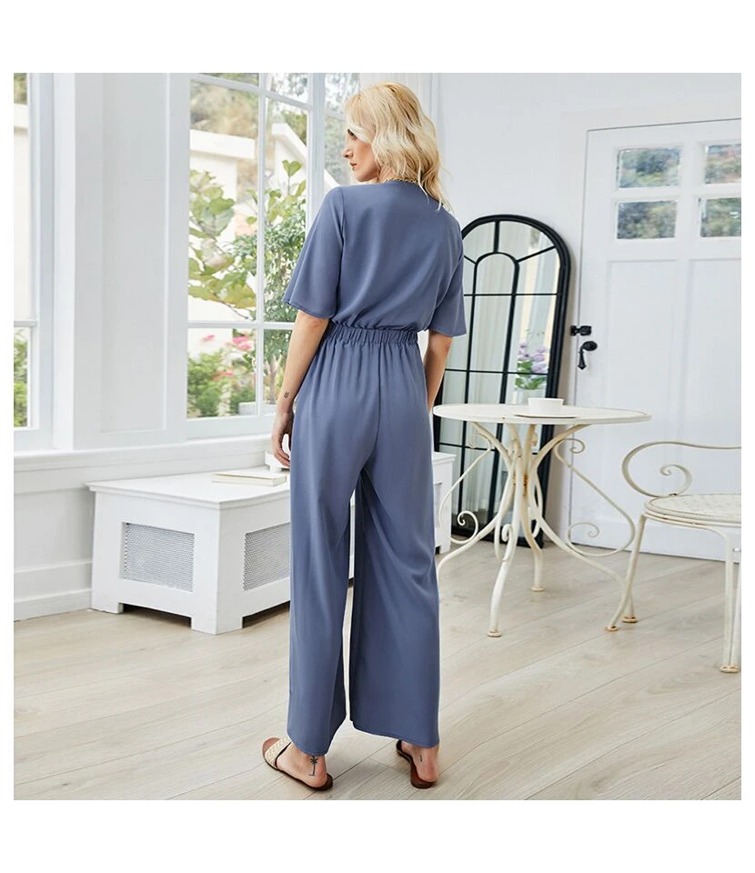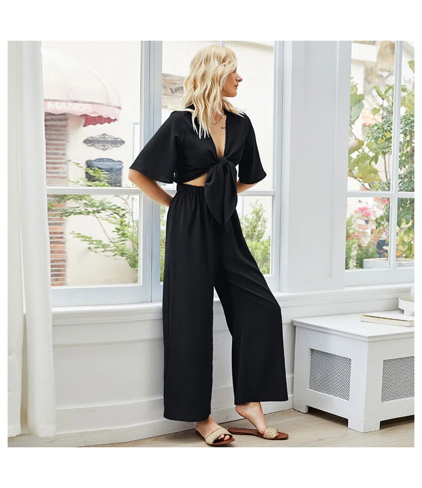 Sexy V-Neck Mid-Sleeve Straps Solid Wholesale Jumpsuits SJ183950