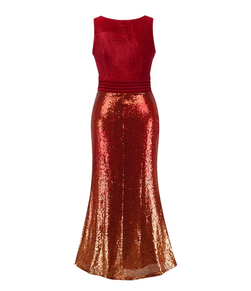 If you are looking for a party dress that can add glam and glitz factor to your look then don’t hesitate to invest in V Neck Velvet Sequin Patchwork Evening Maxi Dress. This outfit is simply fabulous, just look at it from top to bottom its detailing speaks its beauty. This outfit is not demanding just a piece of diamond Necklace is enough for completing the outfit look.