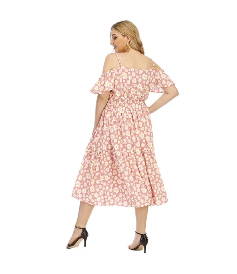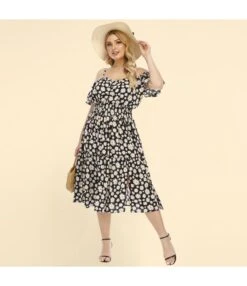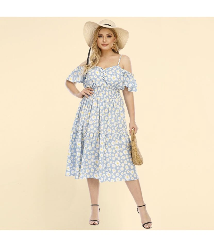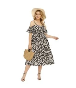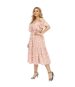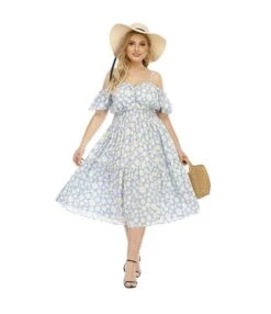 This sling sexy off-shoulder dress for women is so lively, charming and adorable as everyone out there is well aware of the fact that floral print has a charisma that can make anyone fall in love with it. Floral isn’t just a print, but it’s a mood that gives a positive vibe and can ultimately reverse your bad mood. This dress is so stunning because of the pink base and these white florals adding a mesmerizing effect. It is very pleasant to look at and the style in which it is designed, like the pleated waistline and bottom, is so amazing and adds flares to it. This floral print with such a bold off-shoulder style not only looks vibrant and lively but also possesses a sassy kicky vibe. Try it with a pair of high heels, fleets or strappy flats depending on your mood and comfort level. You can go for a high ponytail, or bun, or either open hair all can make you look cool.
