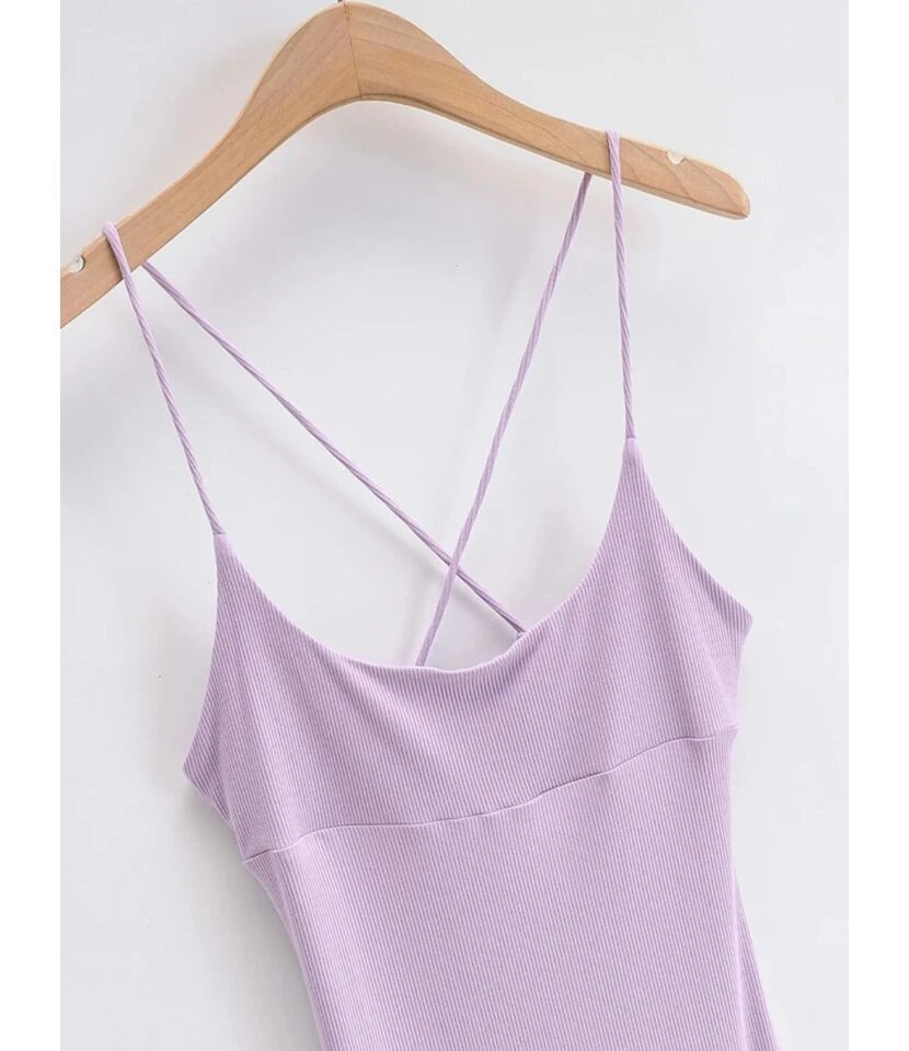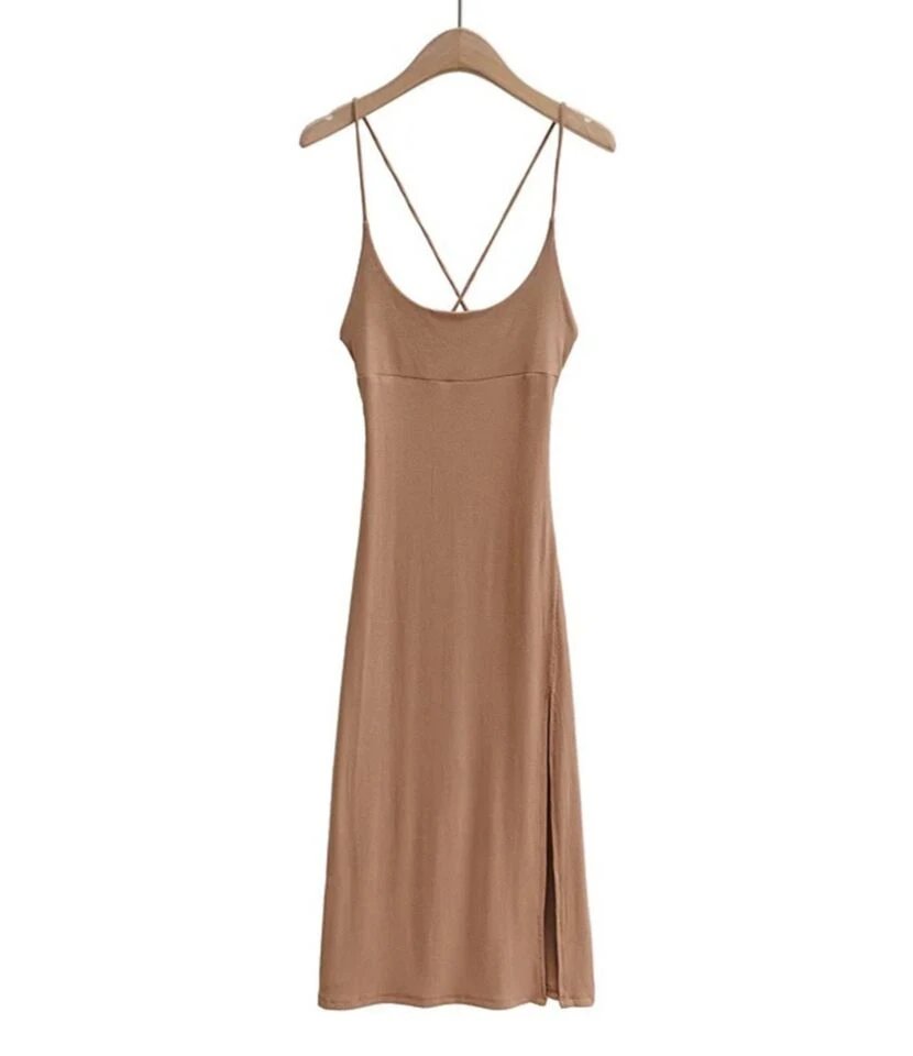 Solid Color Cross Back Tie Split Thigh Suspender Dress