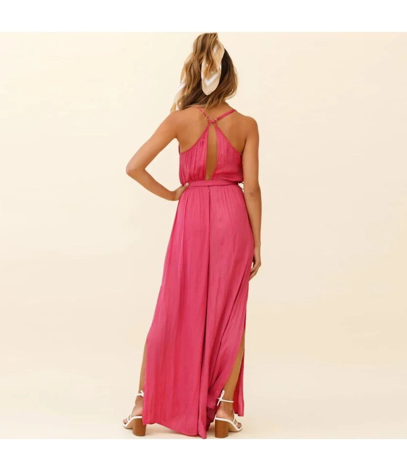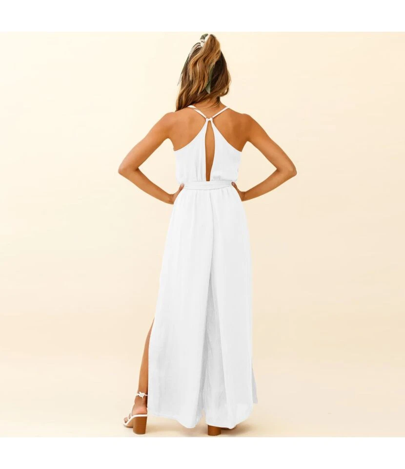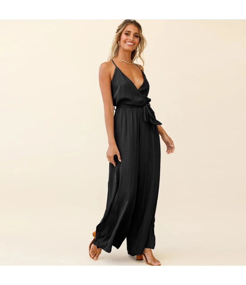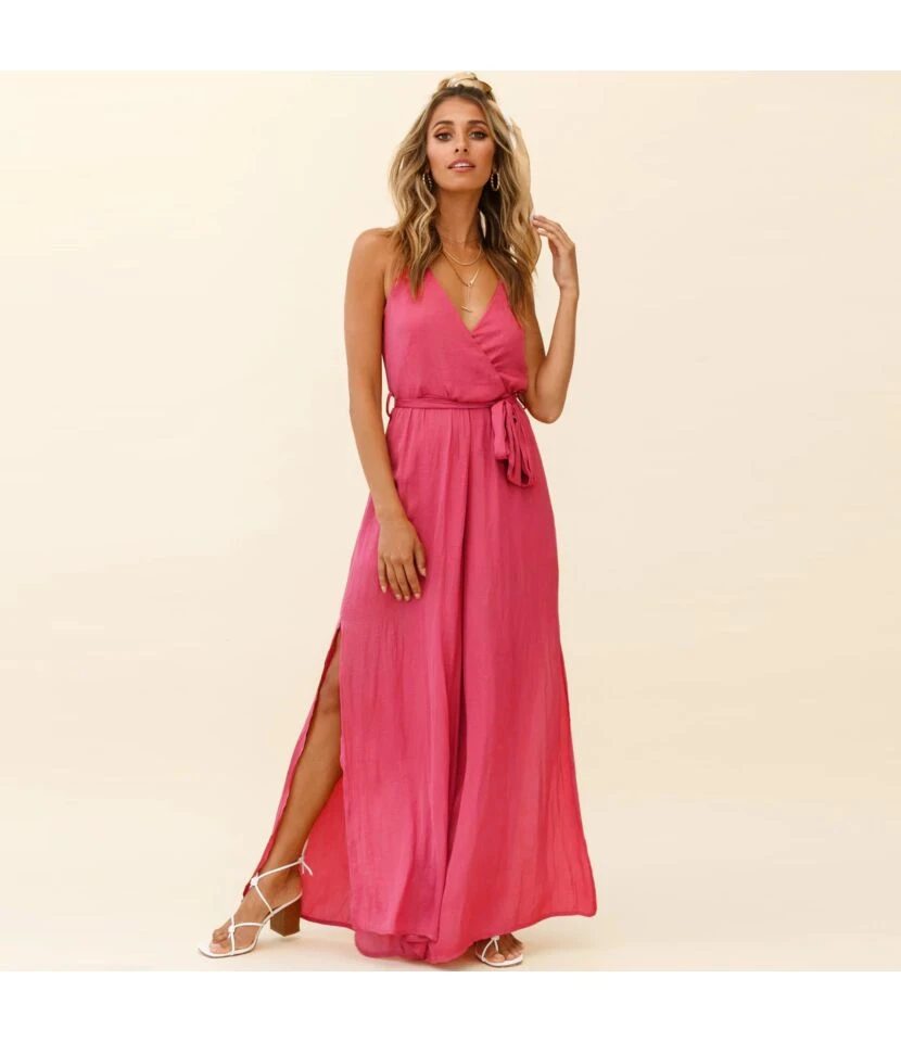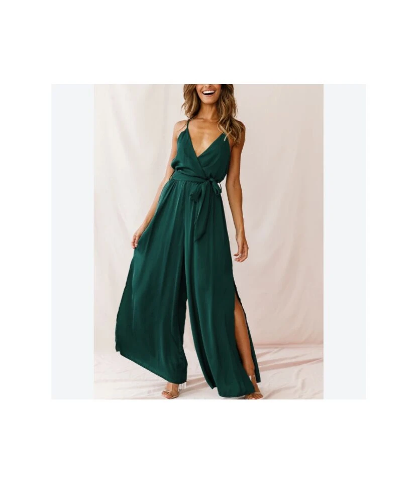 Solid Color Sling Plunge Neck Loose Wide-Leg Womens Slit Maxi Jump Suits Sexy Wholesale Jumpsuits SJN533103
