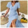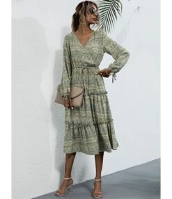 This Surplice Collar Fall Floral Strappy Midi is a must-have fashion choice and most women’s go-to for a variety of occasions. It has a flower print that makes you feel like you’re lost in the meadow. Wearing Surplice Collar Fall Floral Strappy Midi Dress can be both comfy and elegant. This allows more of your figure to be visible. Not just this, but Surplice Collar Fall Floral Strappy Midi Dress gives you a more elegant aspect and lets the figure look more classy, as well as giving you an appealing, feminine look. It’s a tremendous method to style. Length of Surplice Collar Fall Floral Strappy Midi Dress allows your calves to be visible, which immediately elongates them and makes them appear taller than many of the other midi dresses. Surplice Collar Fall Floral Strappy Midi Dress is also a good choice for a night out or a special occasion because the surplice collar adds a more formal touch.