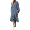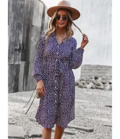 If you are looking for a turn-down collar button midi dress, this is the ideal dress. All the elements of this design are arranged perfectly. The belt element in this dress is stunning and gives a cool look. The cost of this dress is $12.2 only. You can wear this dress in the autumn and winter season. The exciting colors are green, blue, yellow, black, red, and navy blue. This item is made up of cotton blends and viscose, along with the inelastic nature. The further details about the print of this dress are printed and all over floral. The combination of the necklace and the rings gives a more relaxed look. The most beautiful thing in this drawstring midi dress is its button on all over the shirt. These white buttons and the belt are best suited for you to wear on family occasions and parties.