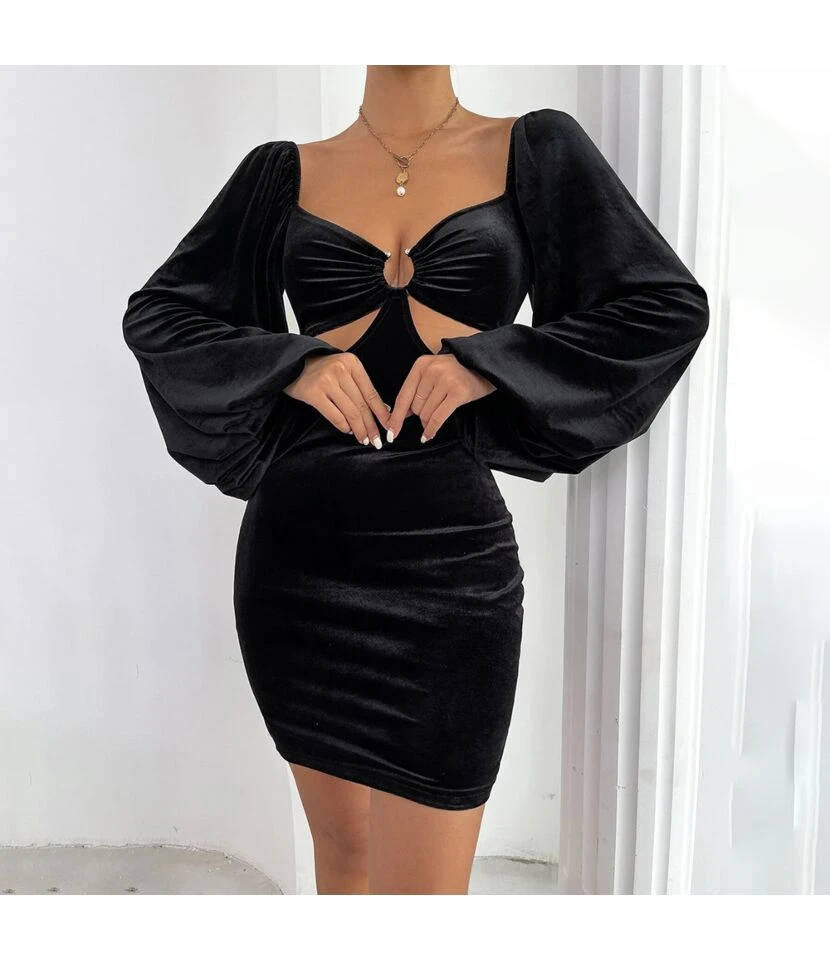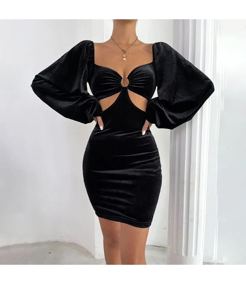Women Bell Sleeve Deep V Neck Hollow Out Wholesale Bodycon Dresses SDN580816