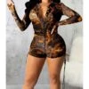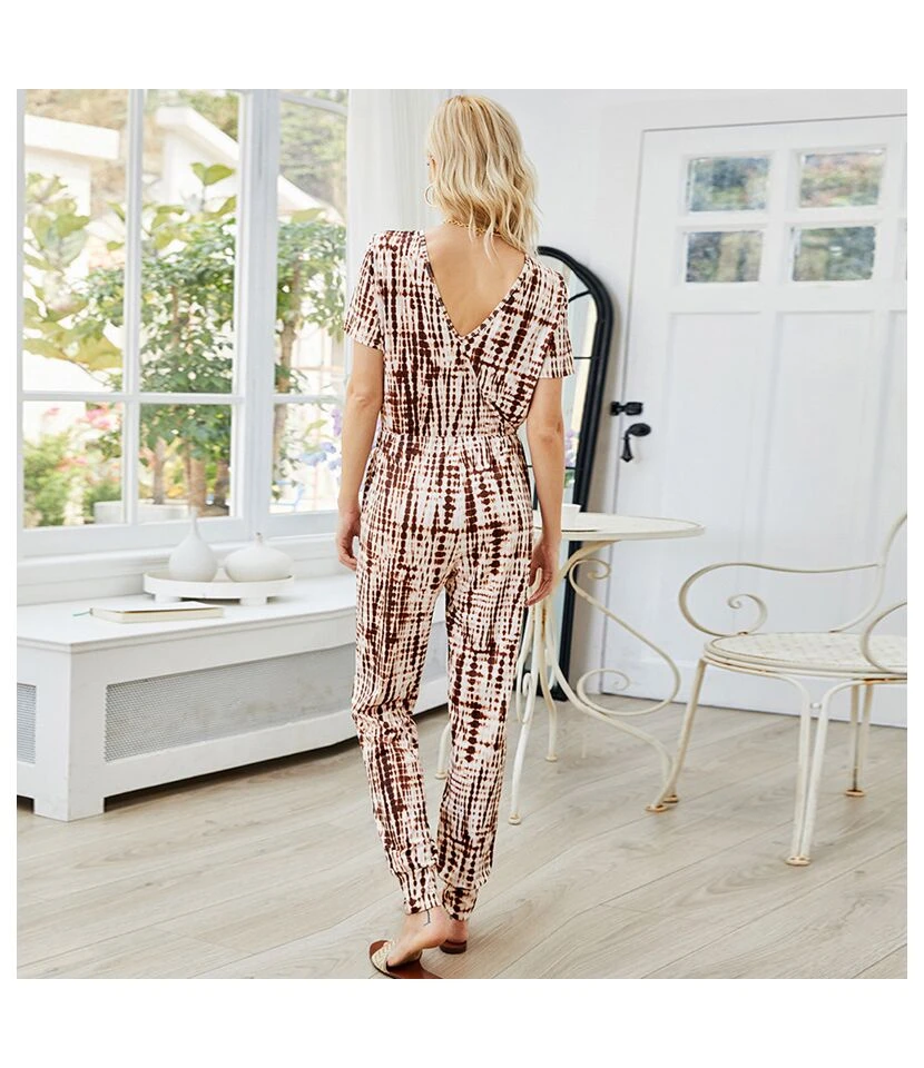 Women Fashion Tie Dye Short Sleeve Round Neck Tie Waist Wholesale Jumpsuits SJ55502
