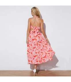 Women Floral Print Halterneck Sleeveless Backless Wholesale Swing Dresses SDN580513