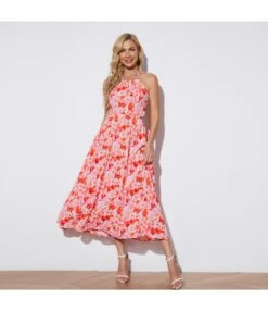 Women Floral Print Halterneck Sleeveless Backless Wholesale Swing Dresses SDN580513