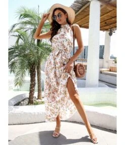 Be the first to review “Women Floral Print Halterneck Sleeveless Tie Waist Wholesale Swing Dresses SDN580711” Cancel reply