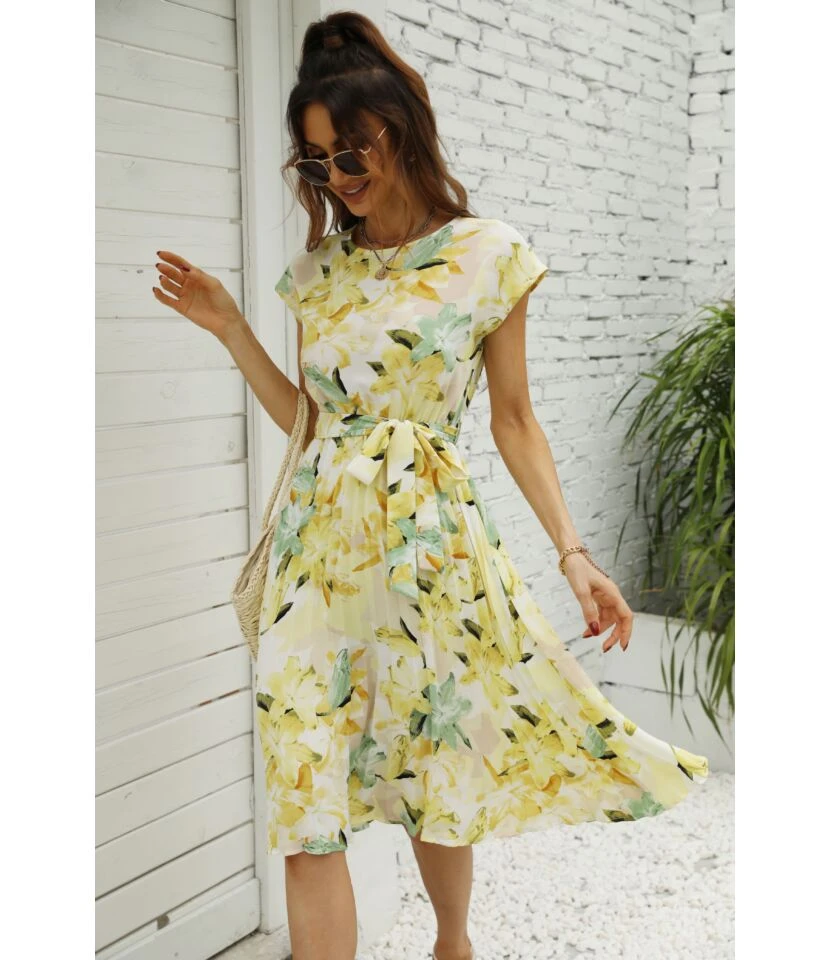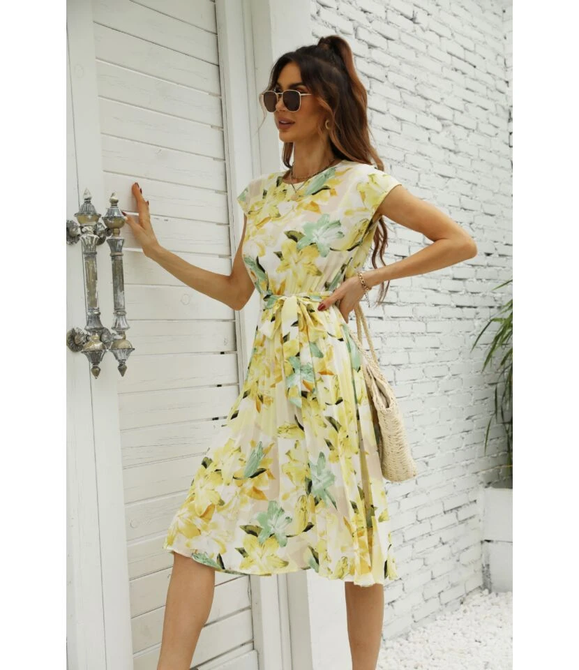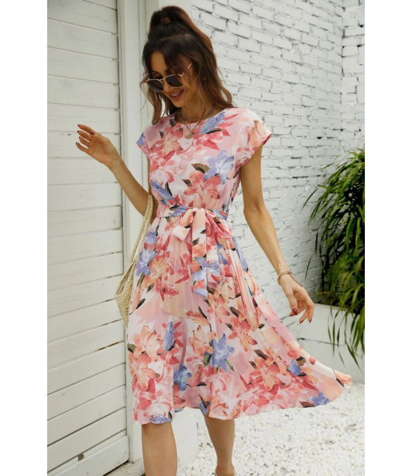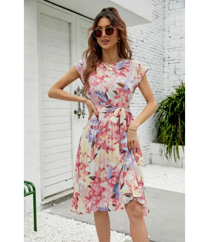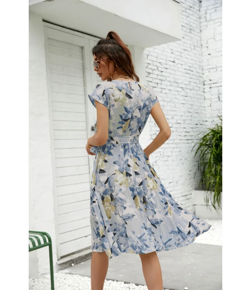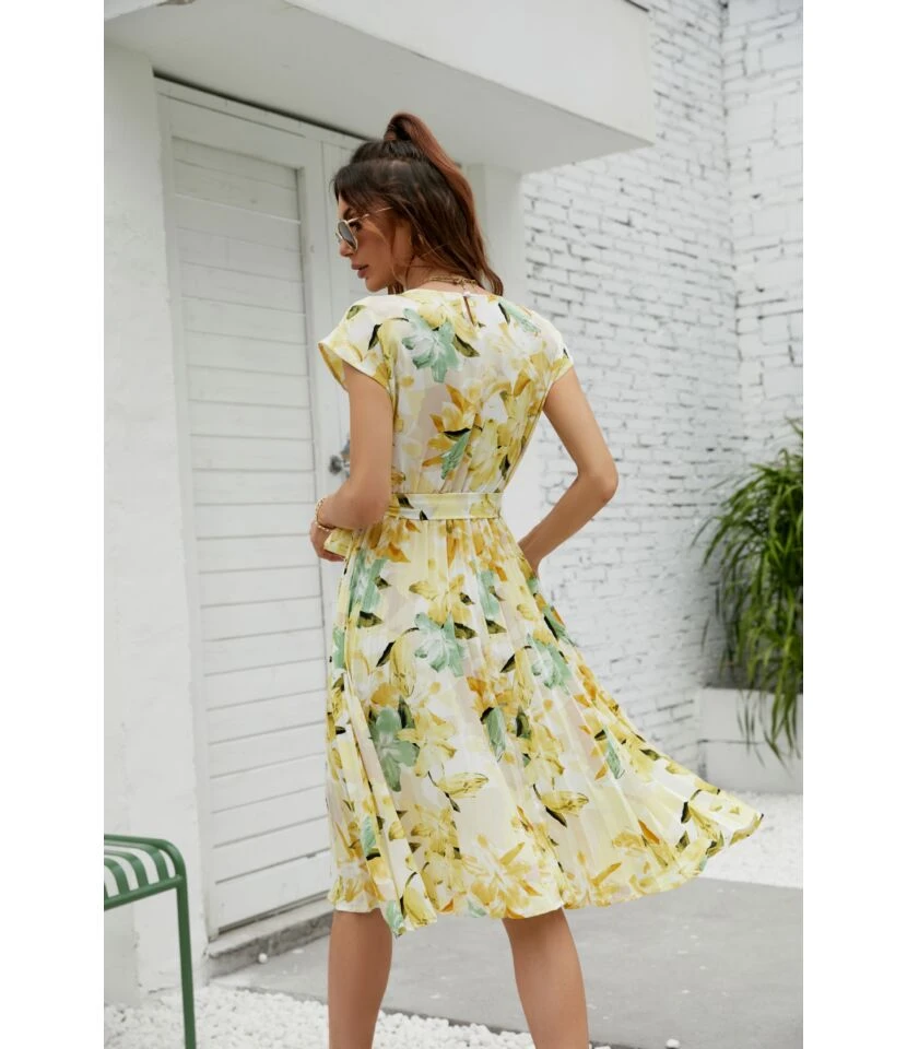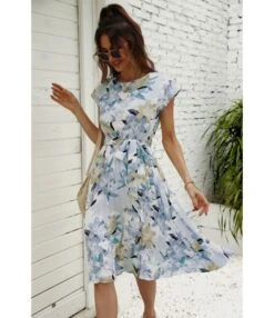 Be the first to review “Women Floral Print Short Sleeve Round Neck Tie Waist Wholesale Swing Dresses SDN580893” Cancel reply