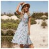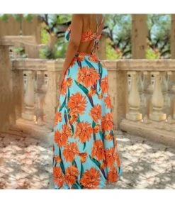 Women Floral Print Spaghetti Strap Sleeveless V Neck Backless Slit Hem Wholesale Maxi Dresses SDN580892
