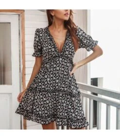 Be the first to review “Women Puff Sleeve V Neck Floral Print Wholesale Swing Dresses SDN580720” Cancel reply