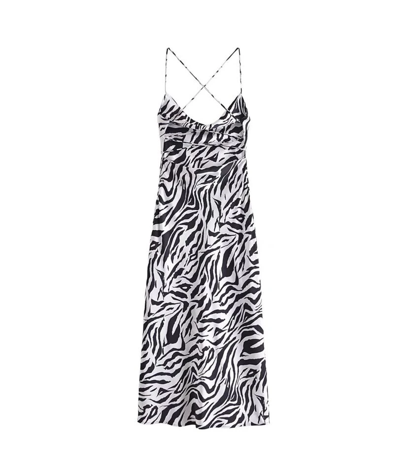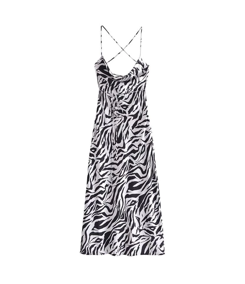 Zebra Printed Open Back Lace-Up Slim Fit Slip Dress Sexy Sundresses Wholesale Maxi Dresses SDN533420
