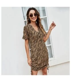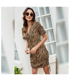 Be the first to review “Zebra Stripe Print Short Sleeve V Neck Wholesale Ruched Dresses SD183195” Cancel reply