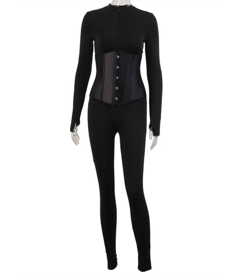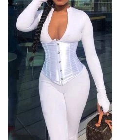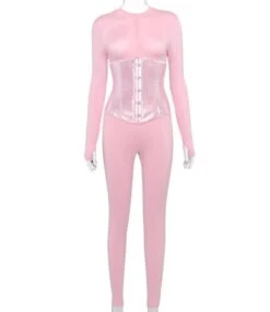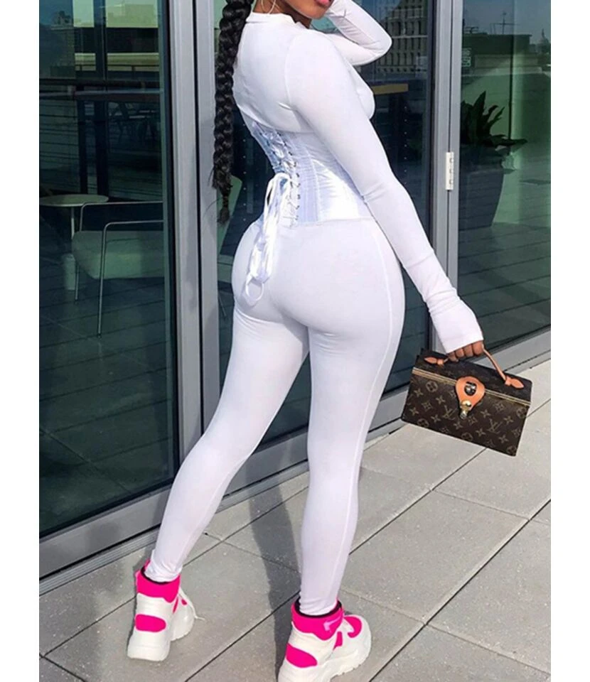 Zipper Skinny O-neck Tunics Long Sleeve Rompers 210710199