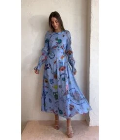 Fashion Personalized Graffiti Lantern Sleeve Long Irregular Dresses Wholesale Dresses N5923080800038